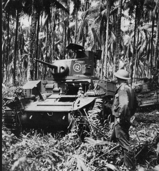 M-3 Stuart light tanks manned by the 2/6 Australian Armored Regiment, near Duropa Plantation near Buna, New Guinea